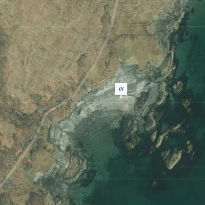 is located down a private road, which starts about 100 meters from the phone box in the village of Croggan. To get there you follow the road signposted to Lochbuie and turn left at the end of Loch Spelve