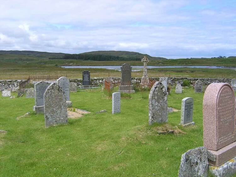 The church can easily be seen to the right. There are then two gates to go through. This is the only medieval parish church on the Ross of Mull, of which there are many worthwhile remains. The entrance to the church, an archway, was on the north side and is still intact. The door could be secured by a draw-bar and the sockets for this can be seen in the right hand wall as you enter. On the left, about a metre above eye-level is a very worn piece of carved sandstone believed to be a ‘sheela-na-gig’ – either a suggestive figure placed on an outer wall said to terrify and ward off evil powers or a medieval fertility symbol. For more information on the church see the Mull Historical and Archaeological Society website which has some excellent information on the site.